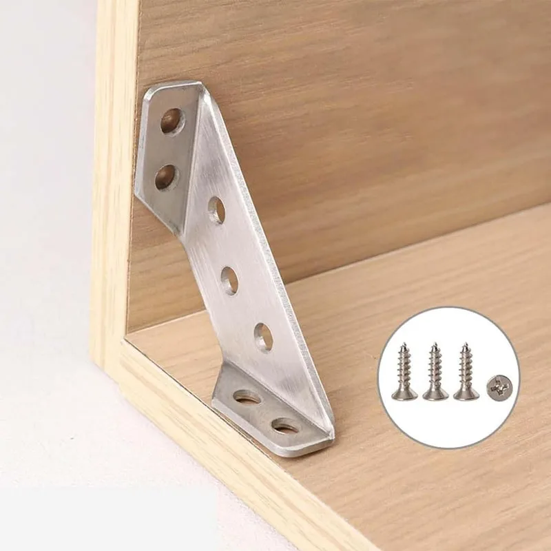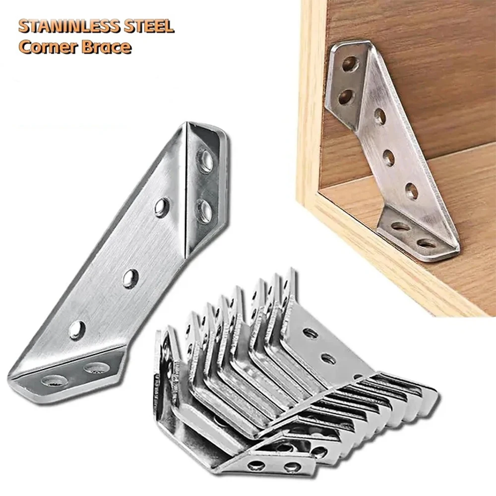 1-10PCS Corner Brackets Stainless Steel Furniture Angle Shelf Connector Cabinet Support Fixing Frame Corner Brace with Screw