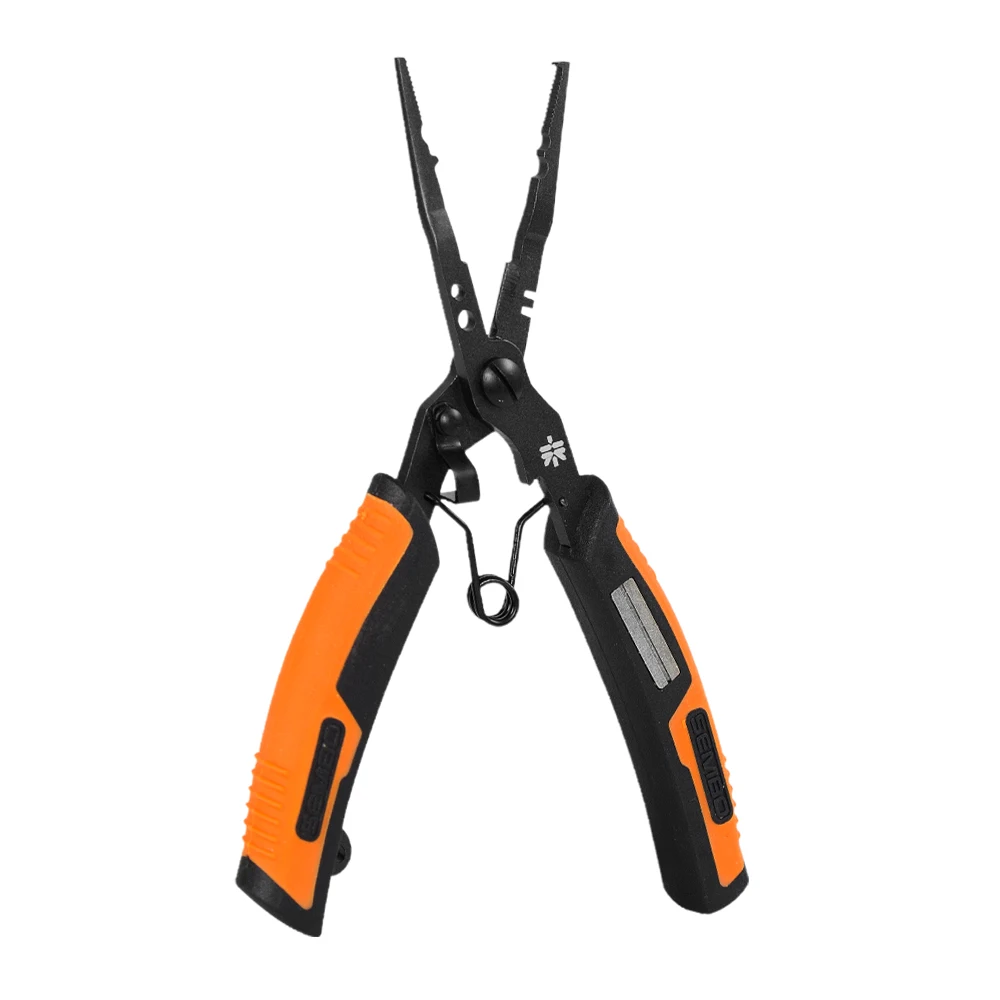 ●Fine serrated jaws allow you to find the ideal grip for multiple wire diameters. Grooved slots near the back of the jaws are ideal for crimping sleeves for a leader or attaching split shot weights to fishing line. Available in both a straight nose and a split ring nose design.