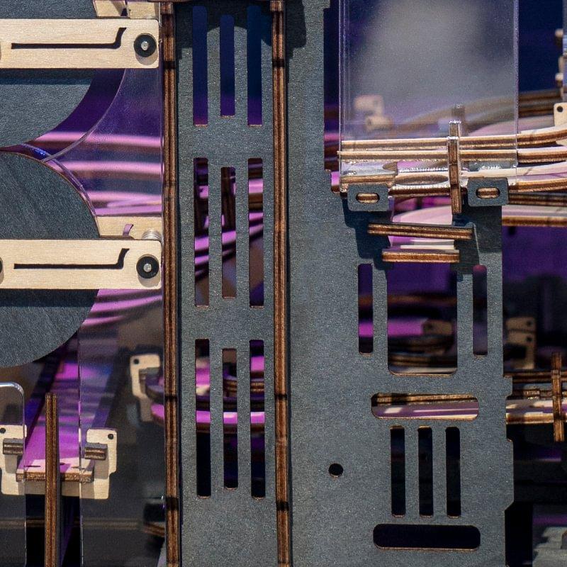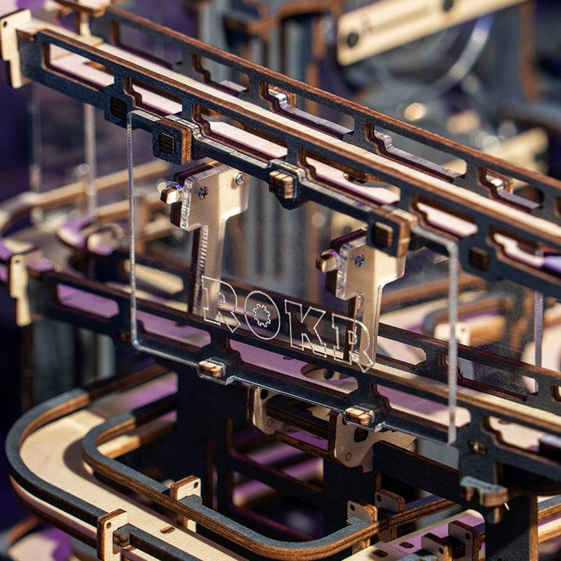 Robotime-ROKR Marble Night City is based on great human engineering. This marble run product combines the beauty of science and machines, involving so many small gadgets. It is a self-assembly 3D wooden puzzle with Tower Distributors & track race balls. Build the set and crank the handle. Watch marbles run crazy down the slopes and twisting turns. Breakthrough material restrictions and incorporate high-transparent acrylic. With a funnel-shaped track, the total length is extended to 2.5 meters. Rotate the handle, the steel ball will reciprocate along the track to experience the creativity of precision machinery with this wooden marble run puzzle.